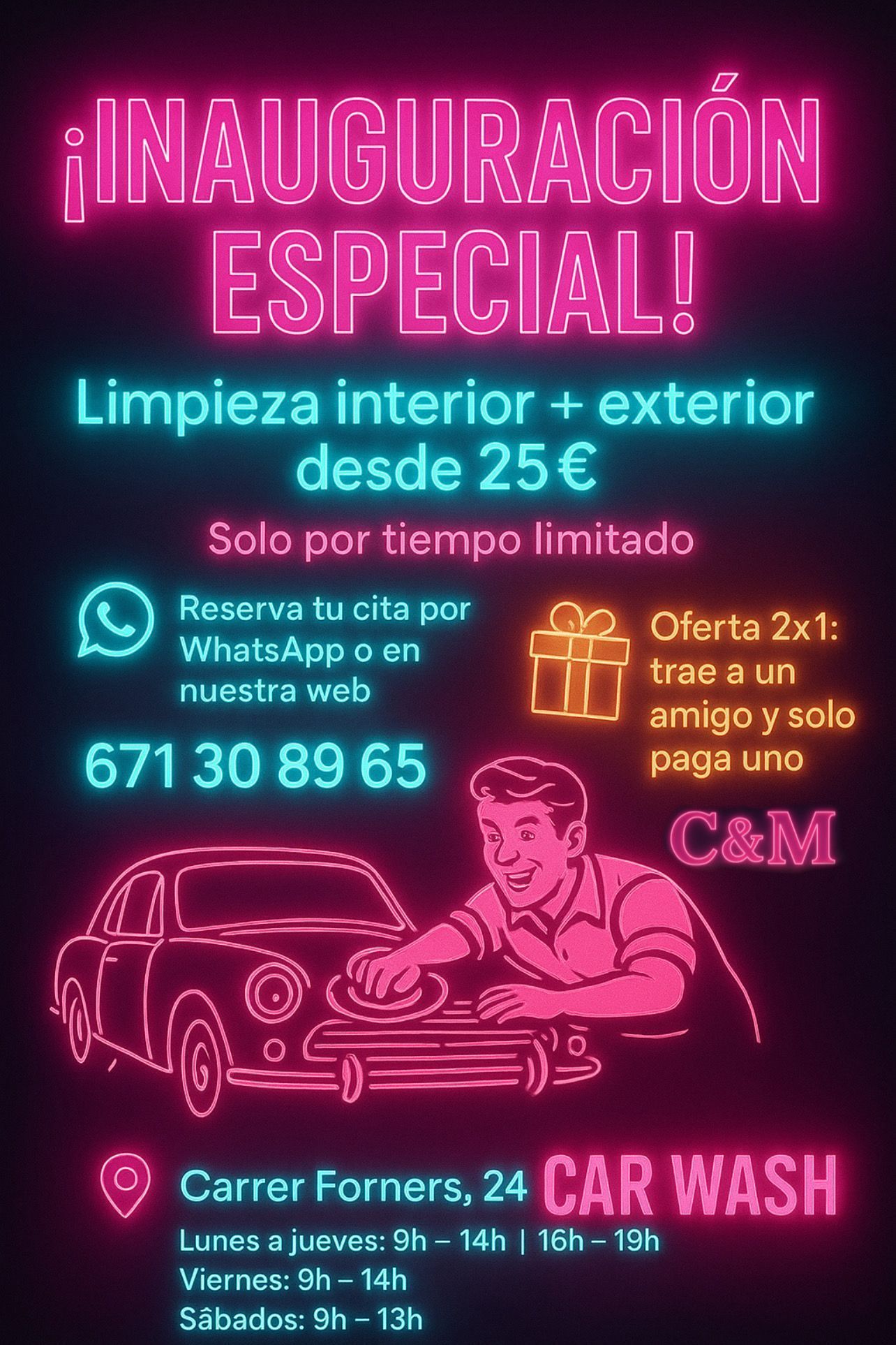 En CARSHINE C&M, nos especializamos en el lavado de coches a mano y en el detallado de alta calidad en Mallorca. Somos un lavadero de coches donde la atención al detalle es nuestra máxima prioridad. Entendemos que tu vehículo es una inversión, por lo que nos aseguramos de que cada limpieza de coches a mano sea exhaustiva y meticulosa, utilizando productos de primera calidad para proteger la pintura y los acabados. Confía en nosotros para un lavado de coche que va más allá de lo superficial, devolviéndole su brillo y frescura original.